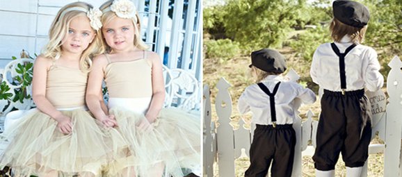 En cuanto a su atuendo es variado, pero siempre deben acompañar los colores y temática de la boda. Si la fiesta es en un palacio los vestidos de las niñas pueden ser más vaporosos siempre que el estilo del vestido de la novia lo sea también y los pantaloncitos de los varones pueden ser de telas más importantes que si fuera una boda campestre. No lo olviden, es fundamental.